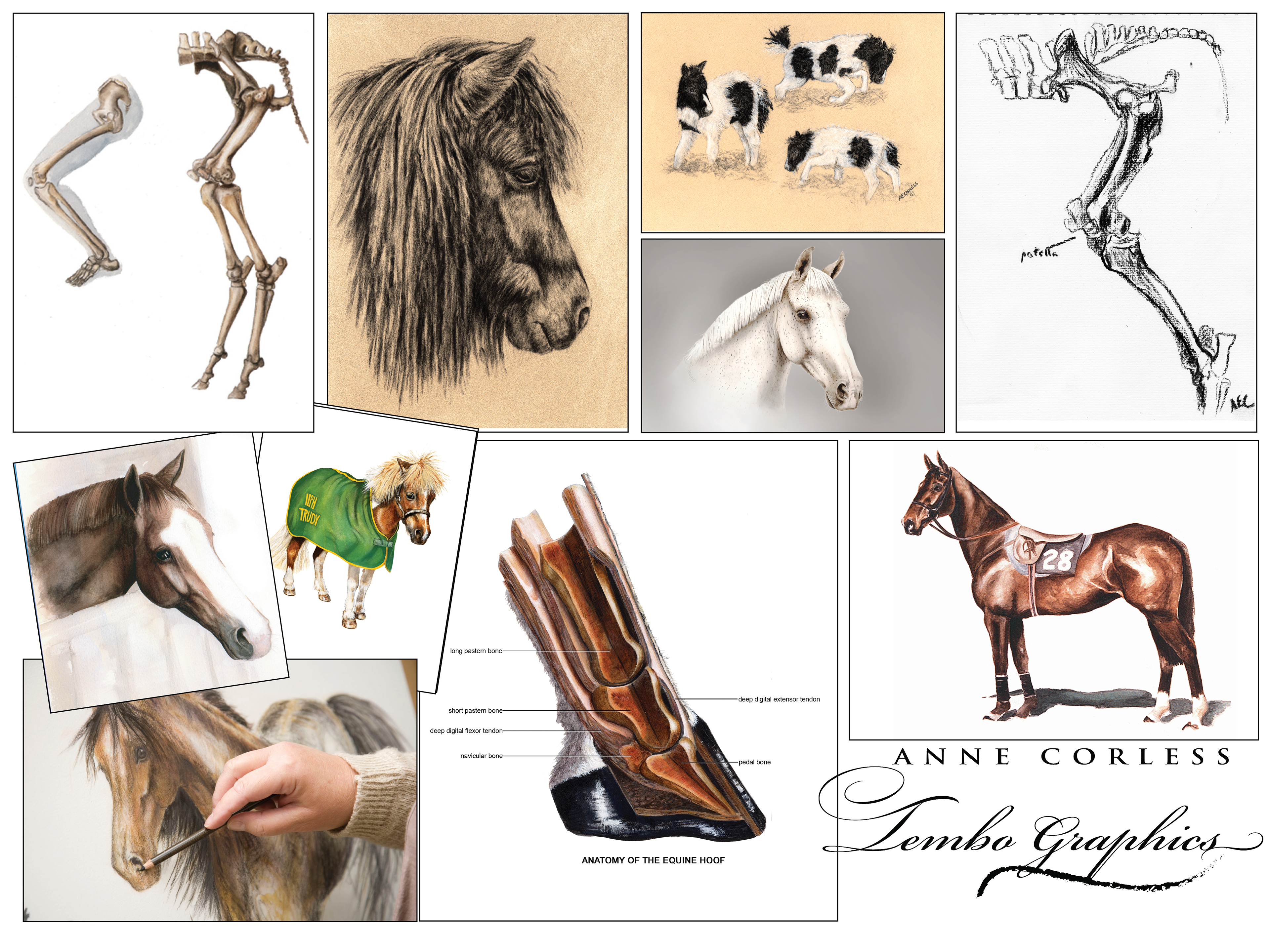 3. Illustrations of foal. Charcoal drawing on toned paper.